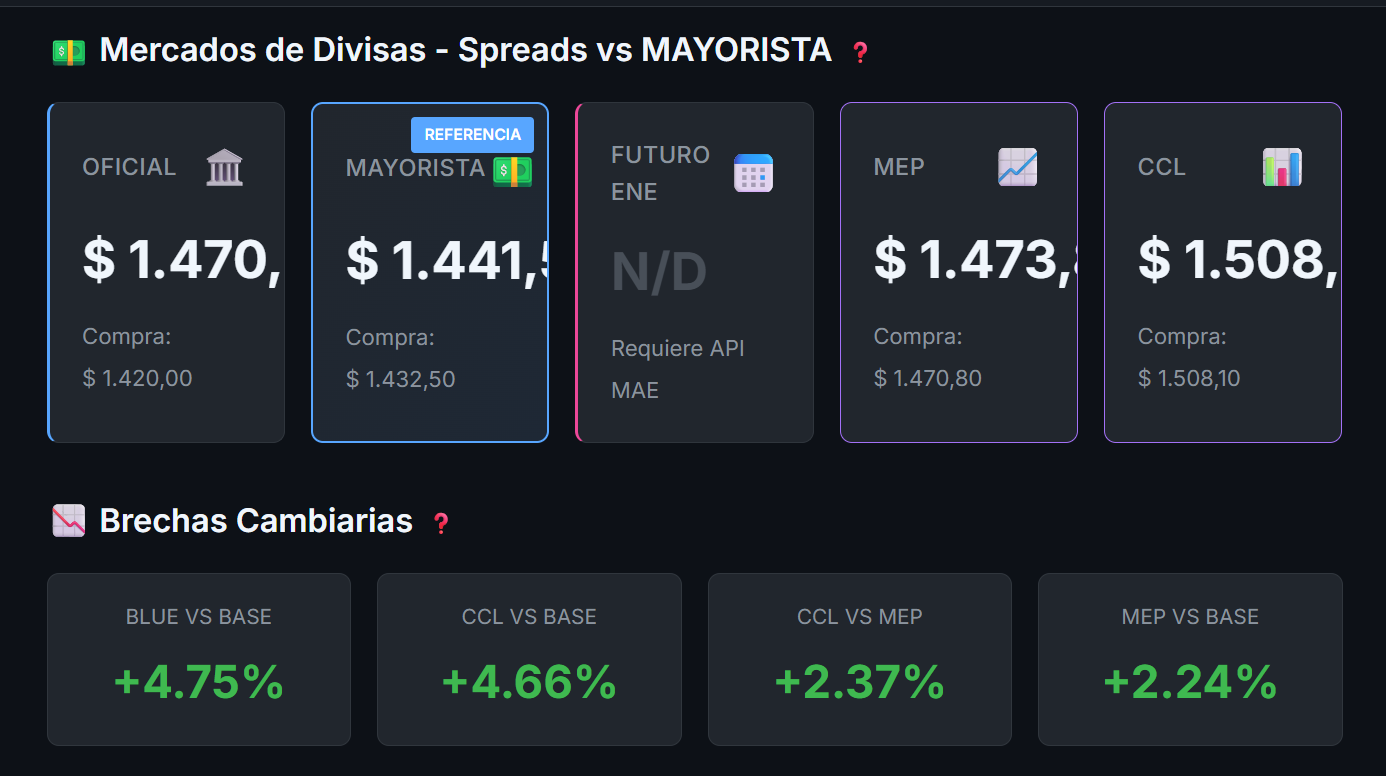 Consolidated Argentine financial data dashboard.